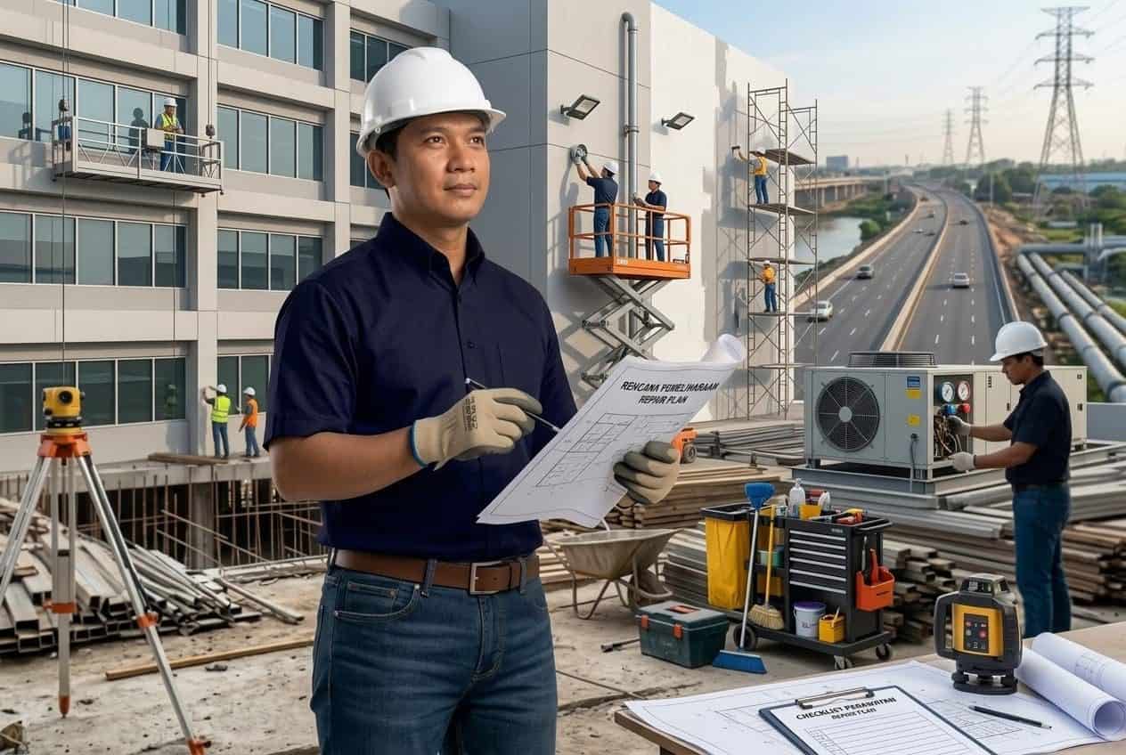 Menjaga kondisi bangunan tetap prima melalui layanan perbaikan struktur, renovasi ruangan, hingga perawatan rutin atap. Kami membantu memperpanjang usia pakai bangunan dengan penanganan kerusakan secara tepat dan cepat sebelum menjadi masalah besar yang merugikan Anda.