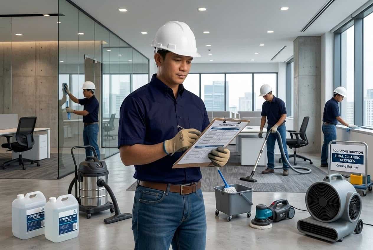 Menyediakan jasa pembersihan menyeluruh setelah pembangunan selesai agar gedung siap langsung ditempati. Layanan ini mencakup pembersihan sisa material, debu konstruksi, hingga penataan area sekitar secara detail agar tampilan bangunan terlihat sangat rapi, bersih, dan profesional.
